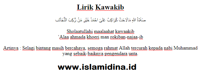 Lirik Sholawat Kawakib Arab Dan Terjemahan